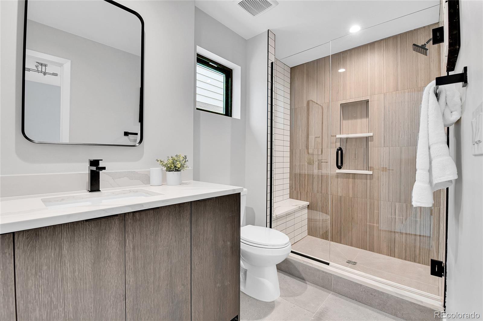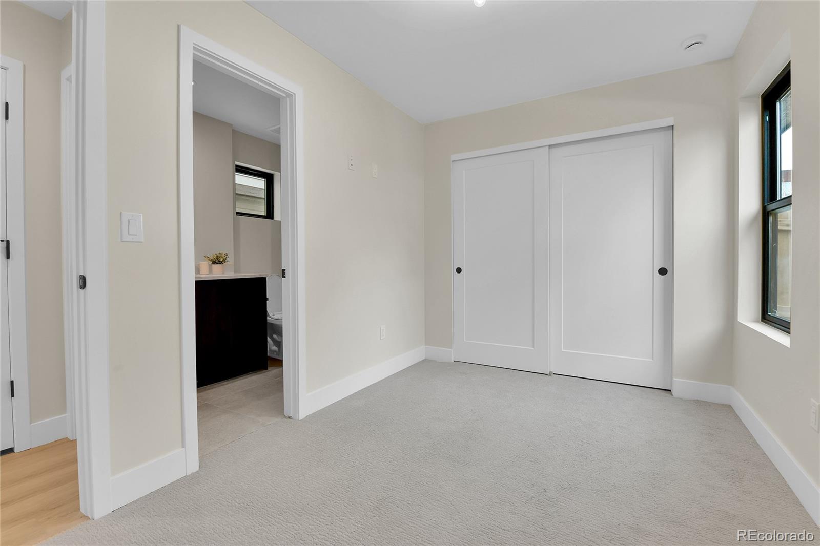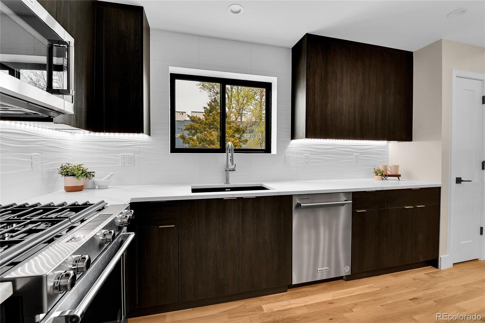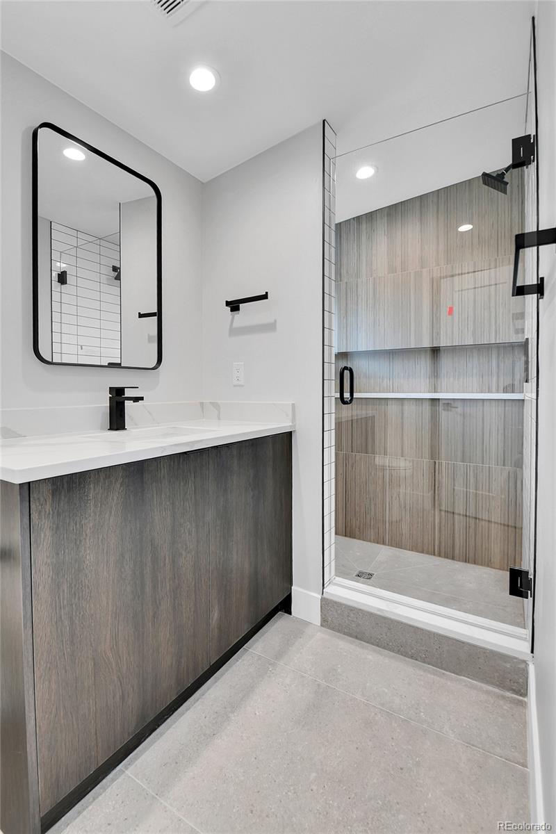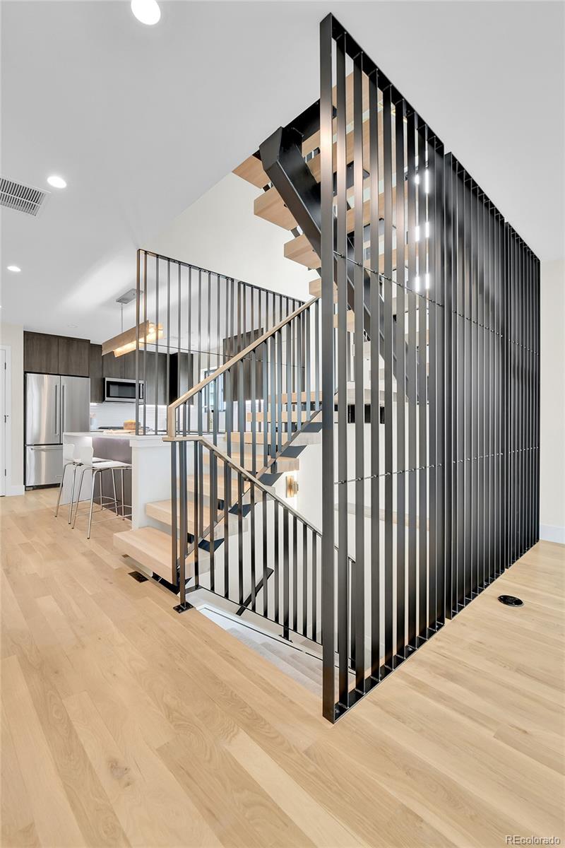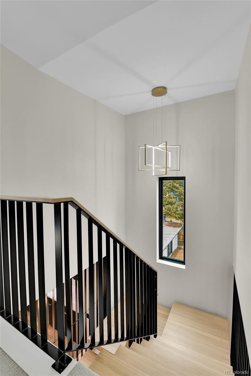 NEW Construction, Modern 3 bed/3.5 bath, 1/2 duplex in Denver's up-and-coming University Hills North. Stunning Mountain views, 1-car Garage, 4-story functional living w/ huge main living space, wide open floor plan, gorgeous deck, more windows than you can count & stunning, modern finishes. Walk through the front door to & up to the Main floor, which features a large kitchen w/ Eat-in dining, a deluxe large pantry, custom soft-close cabinetry, clean tile backsplash, under-cabinet lighting, Kitchen-Aid stainless appliances with gas range, hood & more. Enjoy the nook and custom monorail staircase with/ floating wood stair treads. The entire main floor shows off beautiful solid oak hardwoods (no cheap engineered flooring). 8' sliding patio doors walk you out to a private back deck. A 1/2 bath with modern tile & stunning backlit mirror is rarely found at this price point. You can head upstairs to your huge primary suite, secondary suite & laundry room. The primary bedroom has 2 large closets. The primary ensuite bath has a double vanity, custom tile & huge shower. The first floor features a third bedroom with w/an ensuite & is accessible from the side door (or main floor), perfect for guests or Airbnb. Modern finishes throughout. Separate mechanical systems for better temperature control. High-efficiency furnace & water heater. Pre-wired for TV throughout. Private 1-car garage wired for electric vehicle & smart/wifi opener. NO HOA. 1/2 block to CO Light Rail. I-25, DU, Platt/Wash Park. New city park across the street; 9 projects are in progress within 2 blocks. 14-unit townhomes, 84-unit apt bldg, mixed-use 12-story building @ CO & Evans, 4 - 4-plex projects between Birch & Ash, and 5-plex project on Ash, etc. Don't miss this amazing opportunity! INTERACTIVE CONTENT: https://www.zillow.com/view-imx/55f58294-7524-4034-86f5-18b911a55e52?wl=true&setAttribution=mls&initialViewType=pano