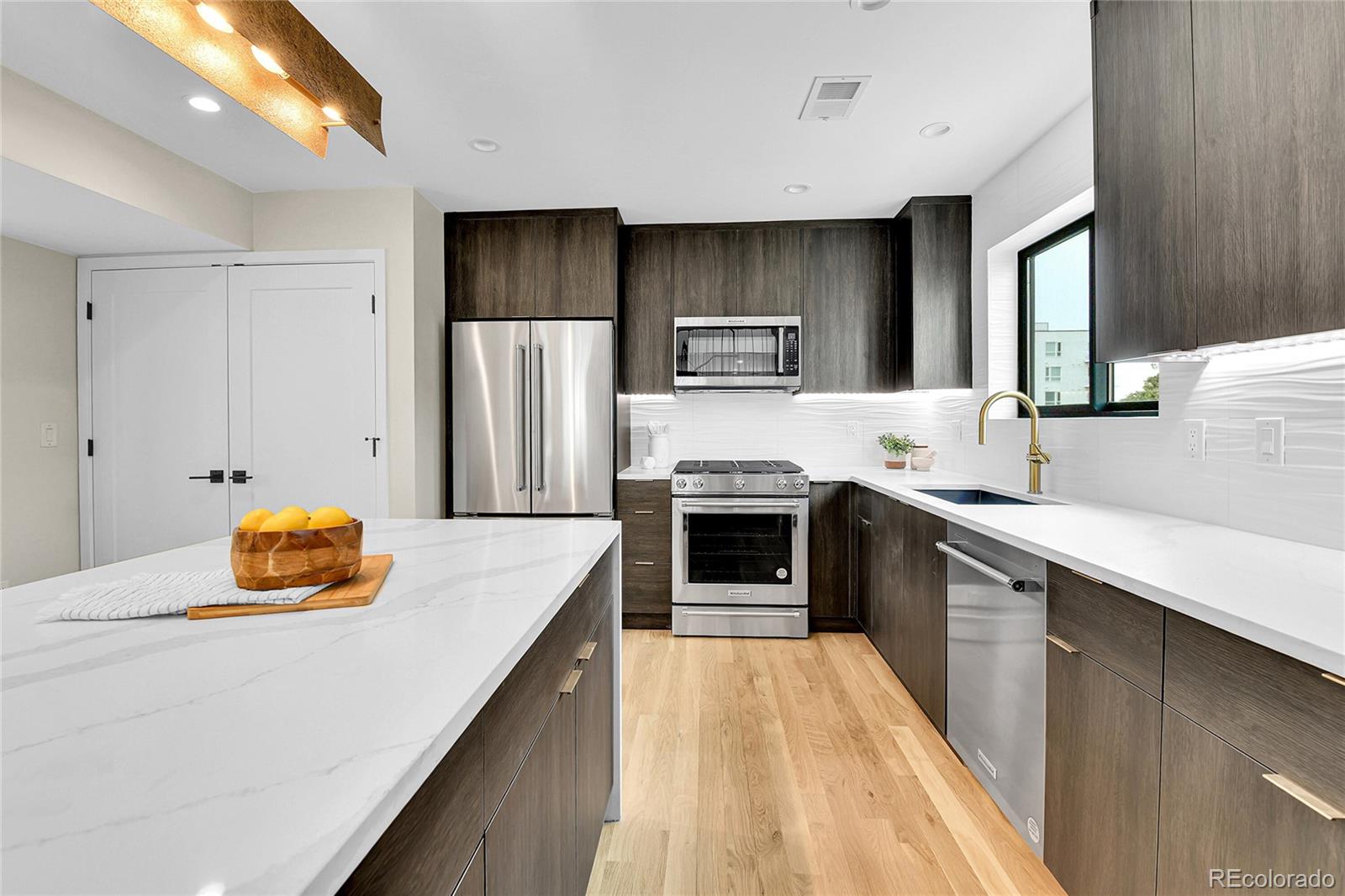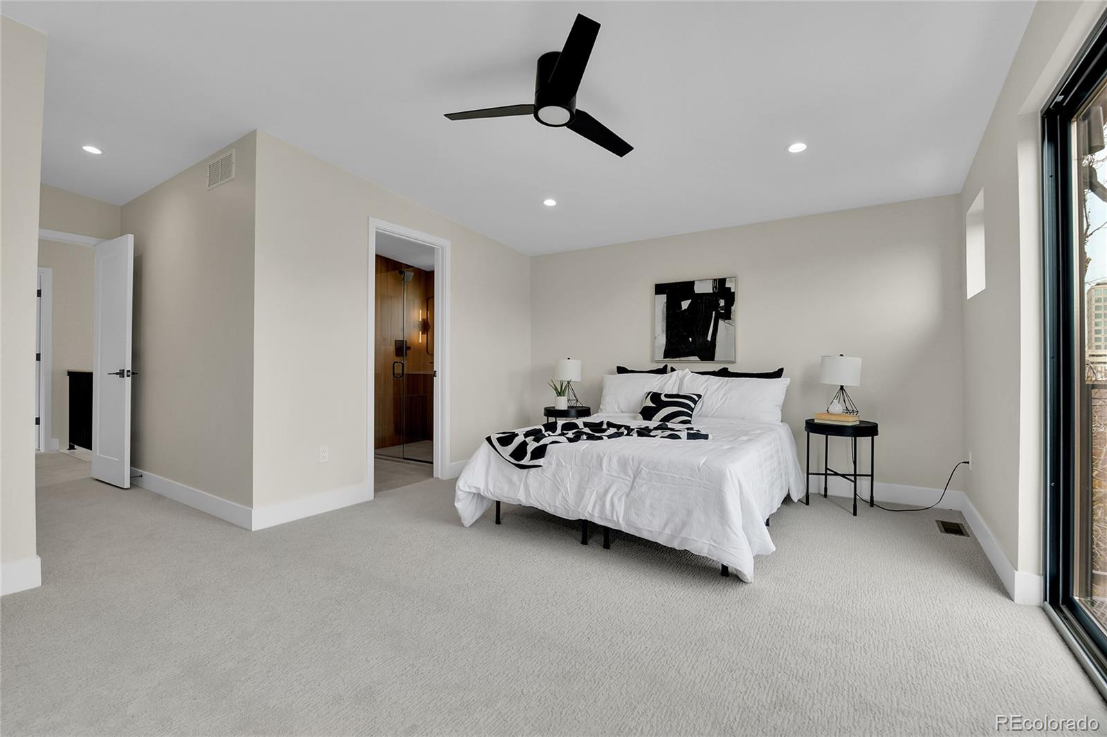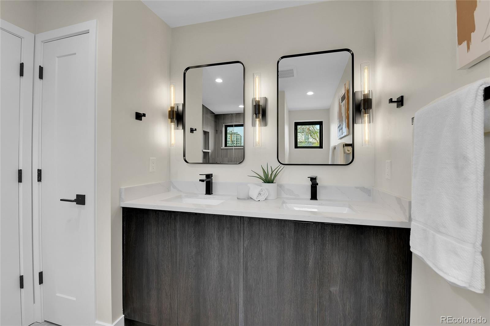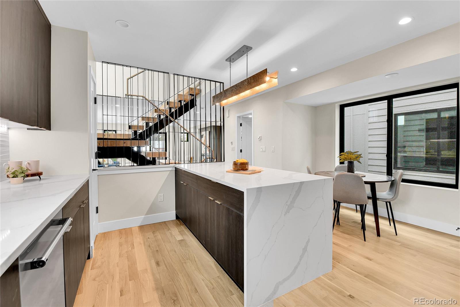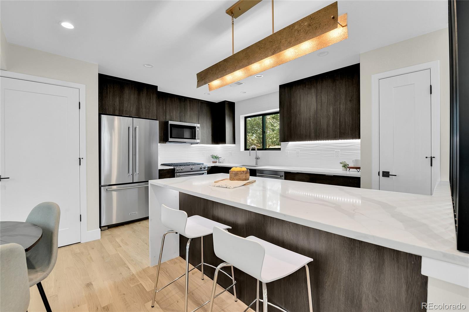 NEW Construction, Modern 3 bed/3.5 bath, 1/2 duplex in Denver's up-and-coming University Hills North. Stunning Mountain views, 1-car Garage, 4-story functional living w/ huge main living space, wide open floor plan, gorgeous deck, more windows than you can count & stunning, modern finishes. Walk through the front door to & up to the Main floor, which features a large kitchen w/ Eat-in dining, a deluxe large pantry, custom soft-close cabinetry, clean tile backsplash, under-cabinet lighting, Kitchen-Aid stainless appliances with gas range, hood & more. Enjoy the nook and custom monorail staircase with/ floating wood stair treads. The entire main floor shows off beautiful solid oak hardwoods (no cheap engineered flooring). 8' sliding patio doors walk you out to a private back deck. A 1/2 bath with modern tile & stunning backlit mirror is rarely found at this price point. You can head upstairs to your huge primary suite, secondary suite & laundry room. The primary bedroom has 2 large closets. The primary ensuite bath has a double vanity, custom tile & huge shower. The first floor features a third bedroom with w/an ensuite & is accessible from the side door (or main floor), perfect for guests or Airbnb. Modern finishes throughout. Separate mechanical systems for better temperature control. High-efficiency furnace & water heater. Pre-wired for TV throughout. Private 1-car garage wired for electric vehicle & smart/wifi opener. NO HOA. 1/2 block to CO Light Rail. I-25, DU, Platt/Wash Park. New city park across the street; 9 projects are in progress within 2 blocks. 14-unit townhomes, 84-unit apt bldg, mixed-use 12-story building @ CO & Evans, 4 - 4-plex projects between Birch & Ash, and 5-plex project on Ash, etc. Don't miss this amazing opportunity! INTERACTIVE CONTENT: https://www.zillow.com/view-imx/55f58294-7524-4034-86f5-18b911a55e52?wl=true&setAttribution=mls&initialViewType=pano