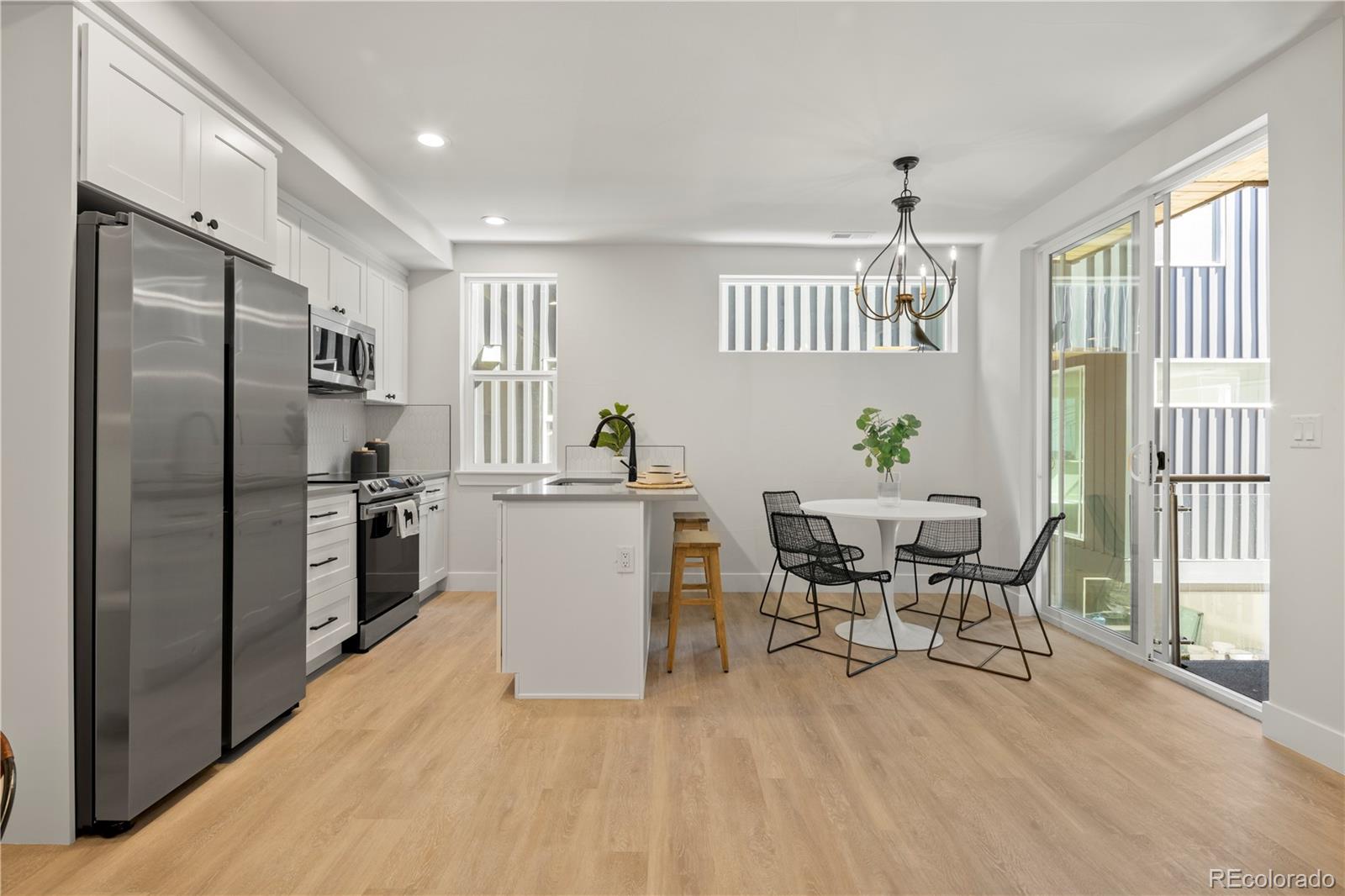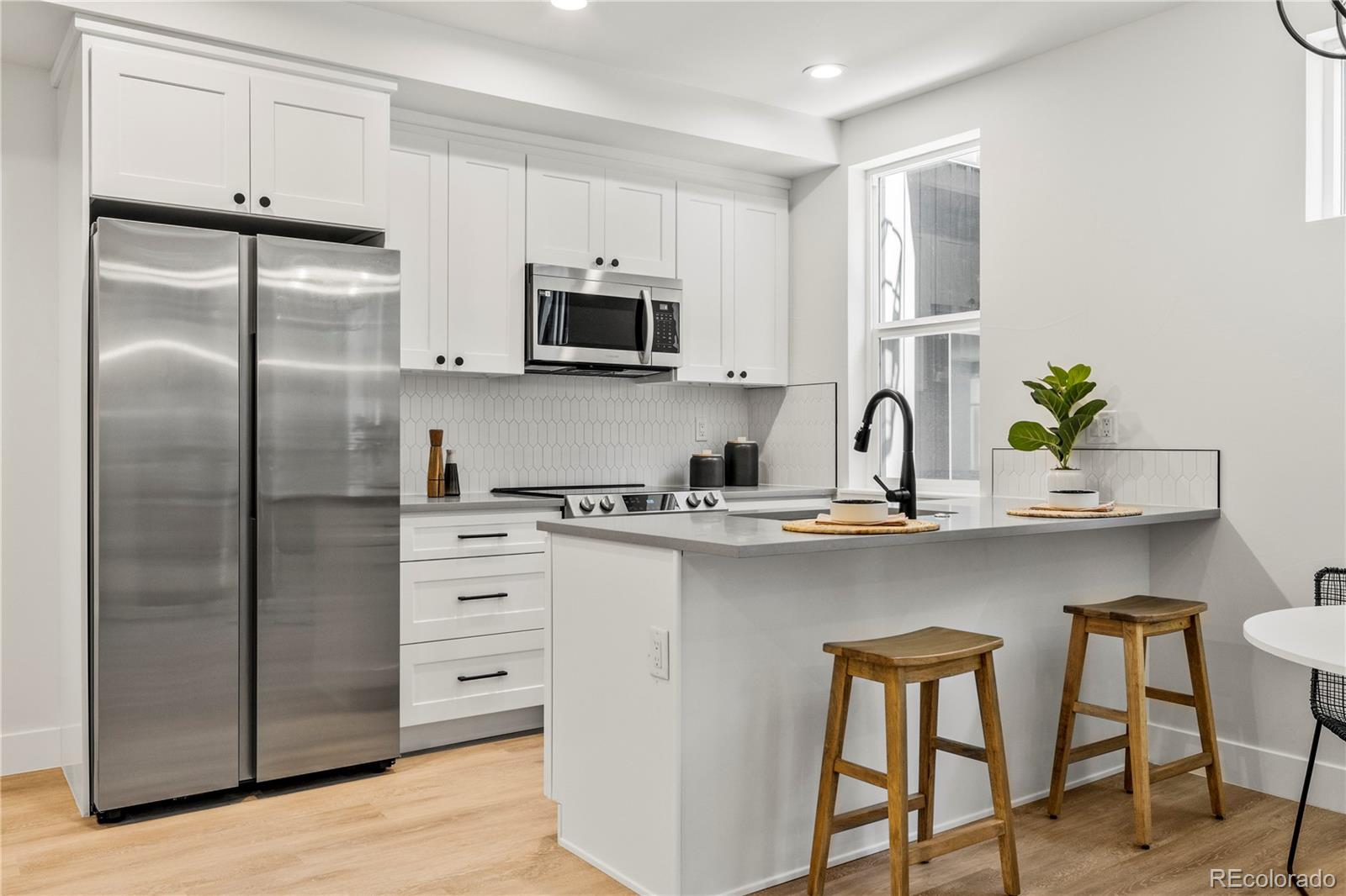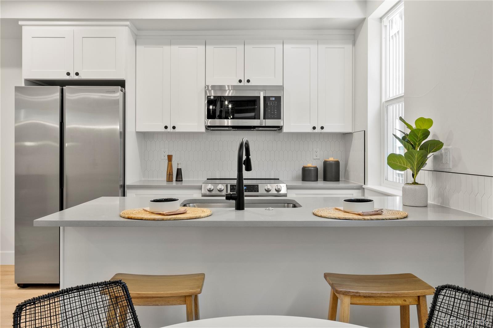This residence boasts sleek contemporary design that pairs quality construction with thoughtful touches, style and functionality. Enjoy attached one-car garages, ensuite bedrooms, hardy board cement siding, semi-finished attics and glass-wrapped balconies perfect for a bbq grill. Select units even feature grass yards for pets and epoxy coated garage floors. Three distinct designer finish color packages to choose from. From hand-troweled walls to trendy tiles, quartz countertops, high end vinyl flooring, and designer lighting, every detail speaks to quality craftsmanship and timeless elegance. High speed fiber internet ensures modern convenience for entertainment and working from home. The feel of luxury extends throughout the spacious interior. The open main level seamlessly connects the kitchen, living, and dining areas. The primary master suite offers a private oasis with a generous, walk-in closet and double vanity bathroom. The secondary bedroom with an adjoining bathroom provides flexibility for guests or family members. Need a home office or additional living space? The ground-level bedroom or flex space offers endless possibilities. Forget about HOA fees and complicated agreements - at The Iliff Collection, simplicity reigns. With a small monthly property management fee and a party wall agreement, you can have hassle-free living without sacrificing peace of mind. But the perks don't stop there. Energy-efficient Samsung smart appliances come standard. With the newest park in Denver just a few blocks away coming soon, easy access to the light rail/highway; entertainment and recreation are always within reach. Whether you're headed downtown for a game, out to DTC for work or exploring biking trails along the Highline Canal, adventure awaits just beyond your doorstep. Immediate move-in available.