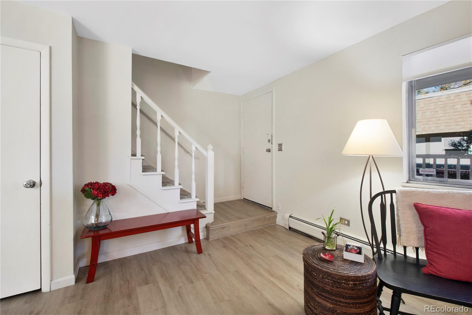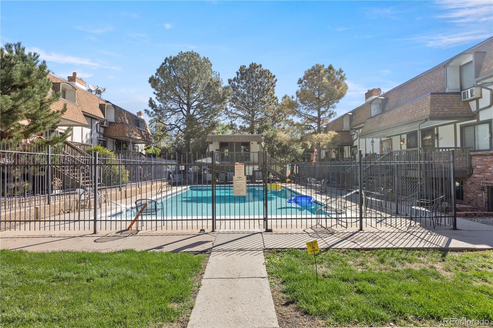You can't beat the LOCATION of this beautiful move-in ready 2 bedroom 2 Bath Townhouse in Lexington Village! Just off I-25 and Yale, it is not only a 5 minute walk to the Yale Light Rail station but it is also adjacent to the HIGH LINE CANAL. Close to shopping, restaurants, Bible Park and Eisenhower Park. The kitchen is full of light and has a peninsula eating space overlooking the charming living room with its cozy brick fireplace. There is a large storage closet under the stairs and the main floor is topped off by a very convenient 1/2 bath. Upstairs has two spacious bedrooms. The larger one can accommodate a "California King" bed. The smaller one shares its closet space with a stackable washer and dryer. Relax with coffee or wine on the covered front porch overlooking the peaceful courtyard and community pool. The back door opens to your very own designated parking place in the carport. There is a storage space for each unit in the common room which also includes an additional coin operated laundry. The HOA covers outside maintenance including the roof, pool, heat, water, sewer, and trash. The front door faces the North and the back door faces South. This is the perfect starter home or investment property! SELLER IS OFFERING A $4,000 CONCESSION TO REPLACE THE WINDOWS.