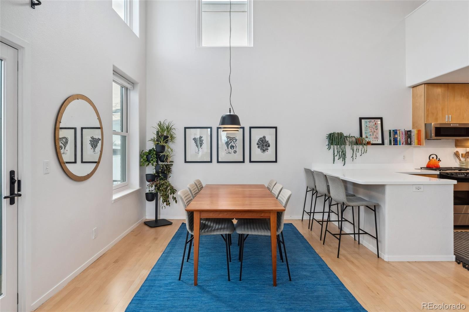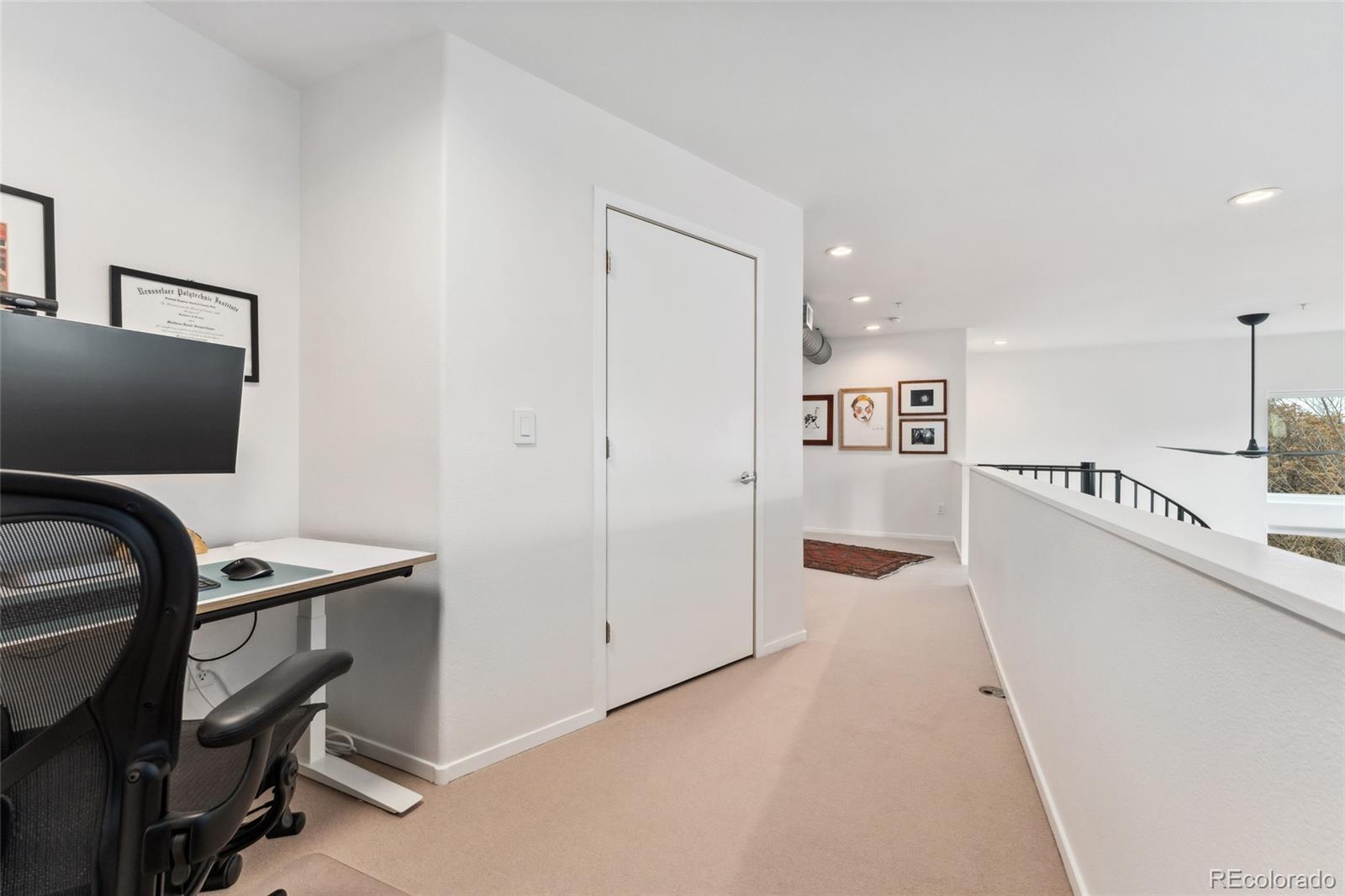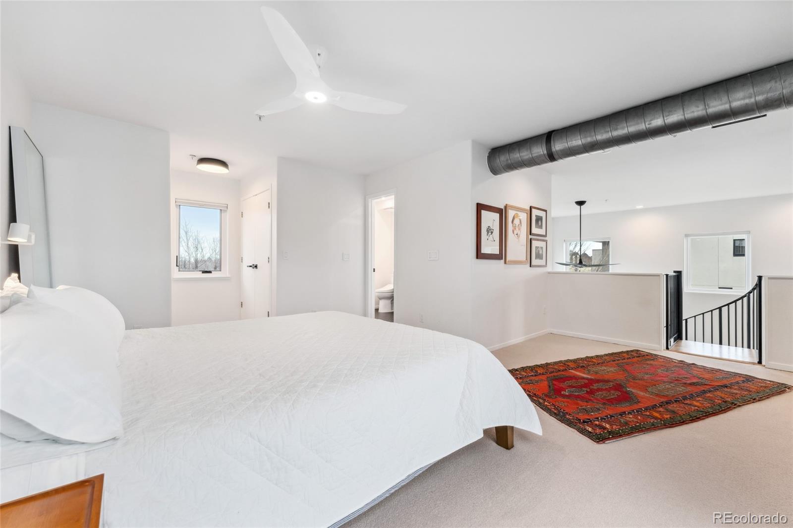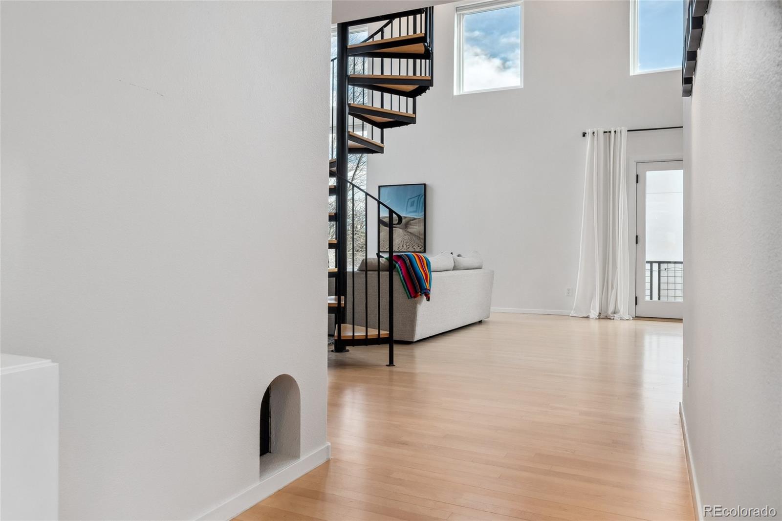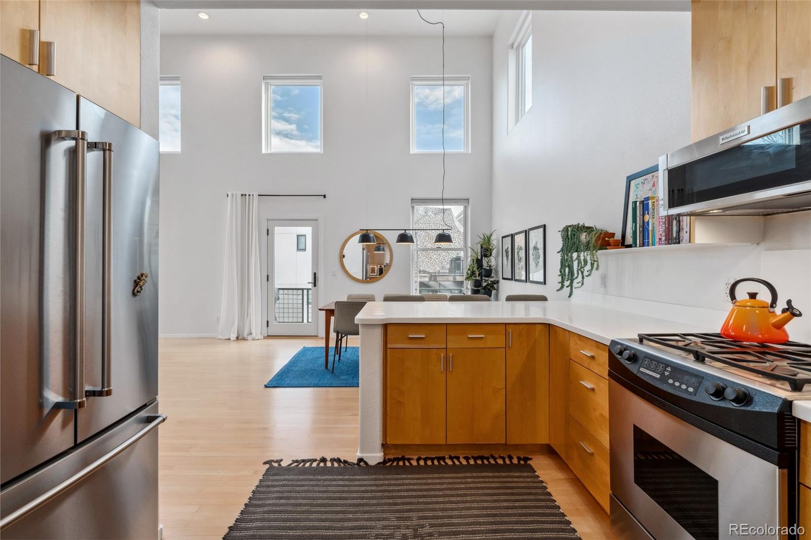 This exceptional condo in the sought-after Capitol Hill neighborhood offers an unmatched combination of modern updates, walkability, and serene living. Located within easy walking distance of grocery stores, coffee shops, and restaurants, this home is also conveniently close to Cheesman Park, the Denver Botanic Gardens, and downtown Denver. Proximity to I-25 & 6th Ave ensures seamless connectivity for commuting and travel. The grand open floor plan features soaring two-story ceilings, filling the home with abundant natural light. Morning sunlight is particularly striking, while the surrounding summer greenery creates a treehouse-like ambiance. Maple hardwood floors and a crisp, clean color palette flow through the living room, dining nook, and kitchen, with a private balcony off the dining area perfect for outdoor dining. The main level includes a spacious bedroom with a nearby full bath. Upstairs, the loft-style primary suite features its own private balcony and a versatile hallway flex space ideal for a home office or yoga retreat. Recent updates make this home truly move-in ready, including a fully renovated master bathroom (2024), new Renewal by Andersen windows and patio doors (2023), and refinished hardwood floors throughout (2020). Additional upgrades include a high-efficiency furnace, SEER 17 AC, smart thermostat, motorized blinds, and an Elfa closet system. The interior also boasts updated lighting, a new garbage disposal, and freshly painted walls. The building itself has been meticulously maintained, with recent projects including a new elevator hydraulic motor (2024), a roof replacement (2021), and resurfaced catwalks (2020). The heated, secure garage provides two parking spaces and a large private storage room, ensuring both convenience and peace of mind. This beautifully updated home is a rare find, offering contemporary comforts, thoughtful improvements, & a prime location in one of Denver's most desirable neighborhoods.