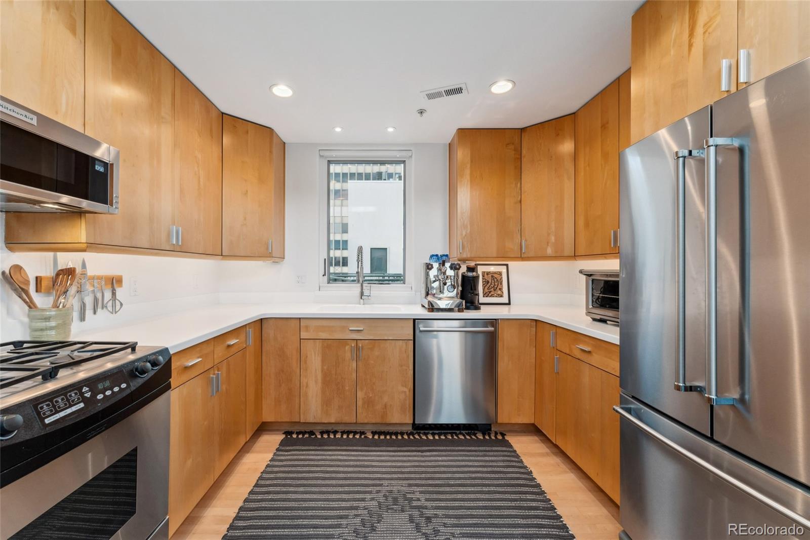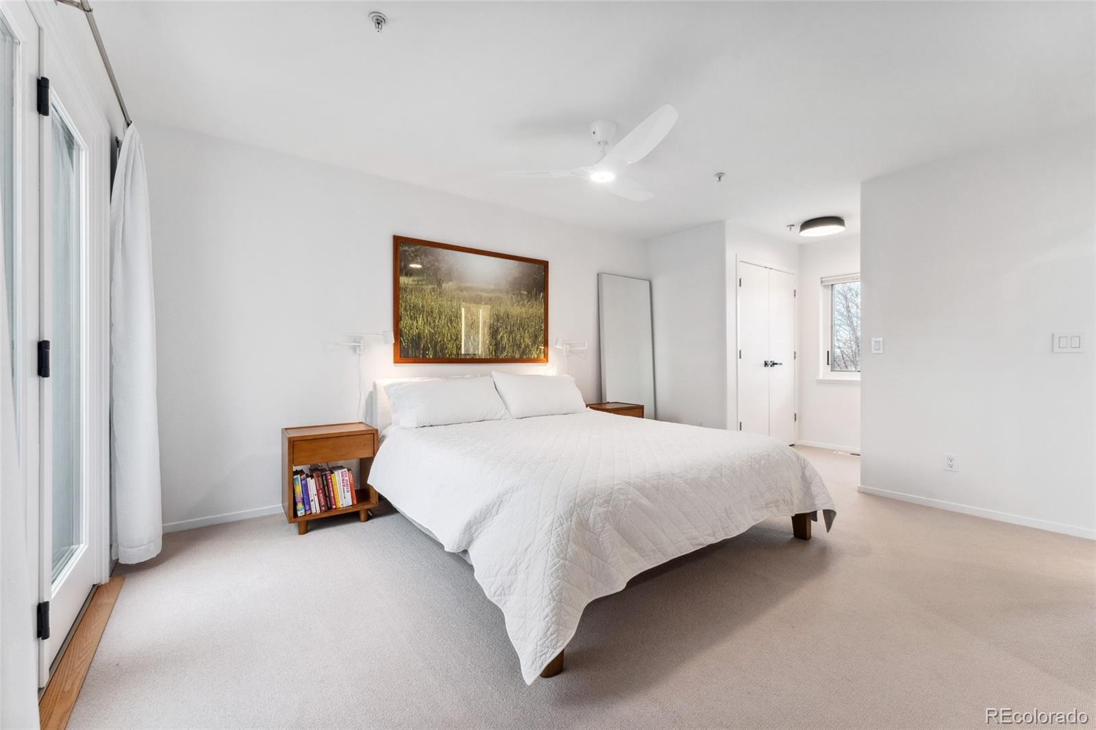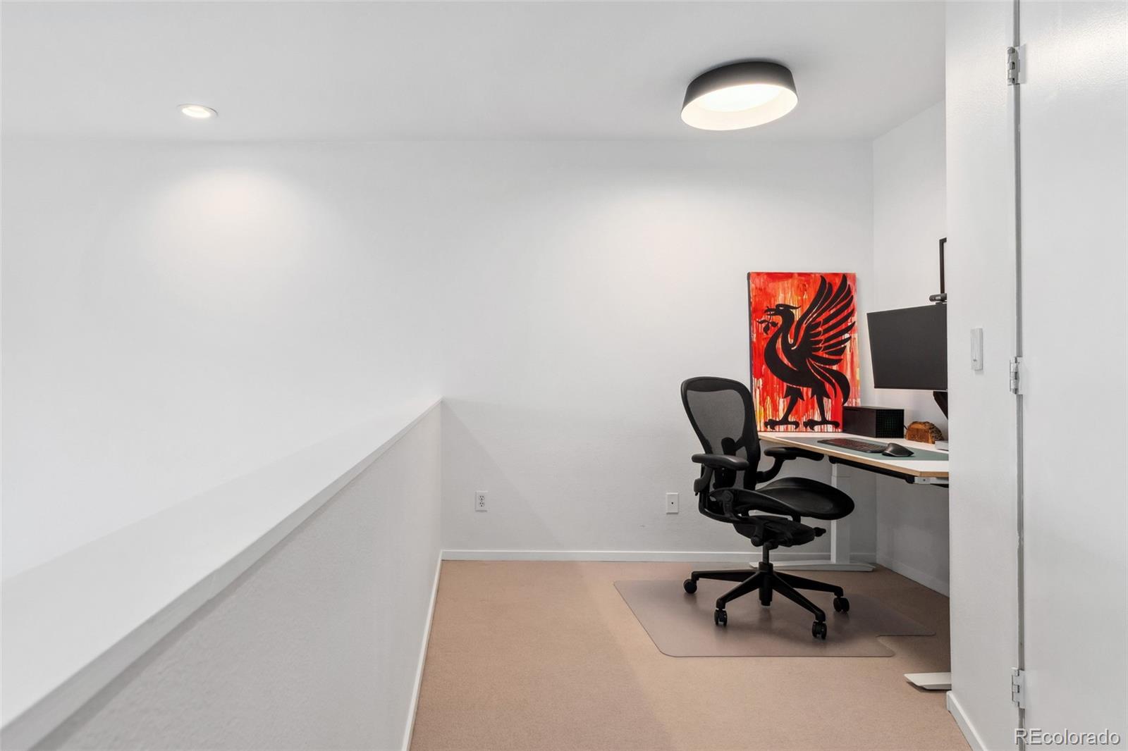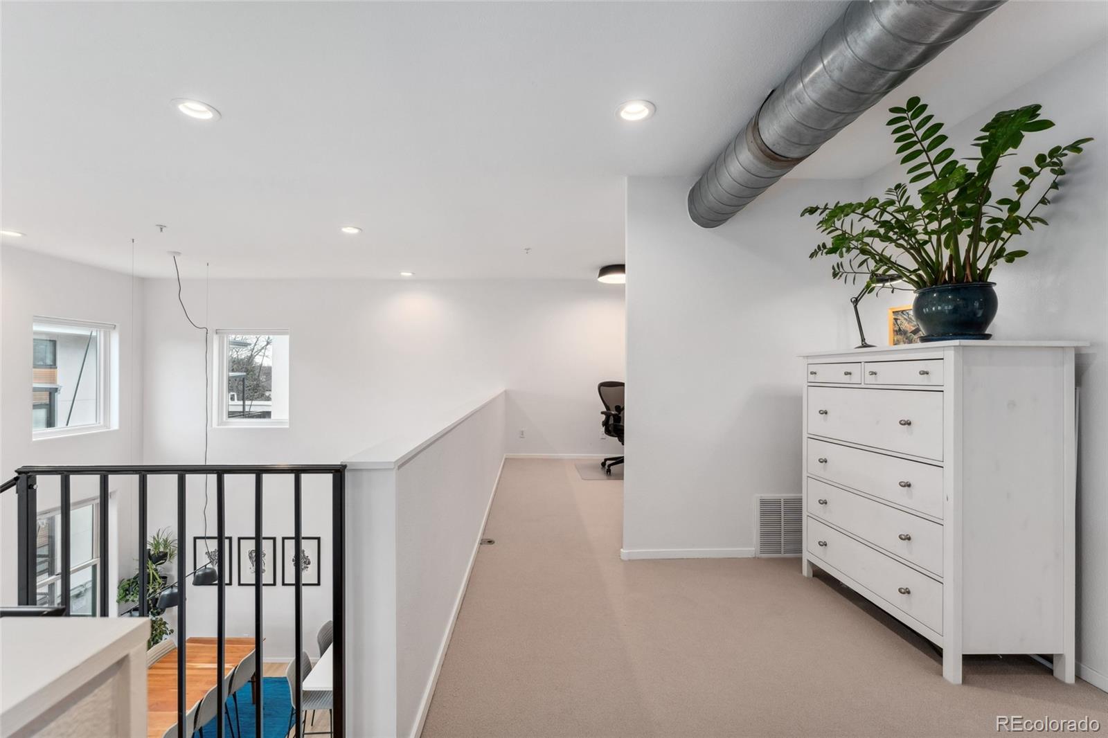 This exceptional condo in the sought-after Capitol Hill neighborhood offers an unmatched combination of modern updates, walkability, and serene living. Located within easy walking distance of grocery stores, coffee shops, and restaurants, this home is also conveniently close to Cheesman Park, the Denver Botanic Gardens, and downtown Denver. Proximity to I-25 & 6th Ave ensures seamless connectivity for commuting and travel. The grand open floor plan features soaring two-story ceilings, filling the home with abundant natural light. Morning sunlight is particularly striking, while the surrounding summer greenery creates a treehouse-like ambiance. Maple hardwood floors and a crisp, clean color palette flow through the living room, dining nook, and kitchen, with a private balcony off the dining area perfect for outdoor dining. The main level includes a spacious bedroom with a nearby full bath. Upstairs, the loft-style primary suite features its own private balcony and a versatile hallway flex space ideal for a home office or yoga retreat. Recent updates make this home truly move-in ready, including a fully renovated master bathroom (2024), new Renewal by Andersen windows and patio doors (2023), and refinished hardwood floors throughout (2020). Additional upgrades include a high-efficiency furnace, SEER 17 AC, smart thermostat, motorized blinds, and an Elfa closet system. The interior also boasts updated lighting, a new garbage disposal, and freshly painted walls. The building itself has been meticulously maintained, with recent projects including a new elevator hydraulic motor (2024), a roof replacement (2021), and resurfaced catwalks (2020). The heated, secure garage provides two parking spaces and a large private storage room, ensuring both convenience and peace of mind. This beautifully updated home is a rare find, offering contemporary comforts, thoughtful improvements, & a prime location in one of Denver's most desirable neighborhoods.